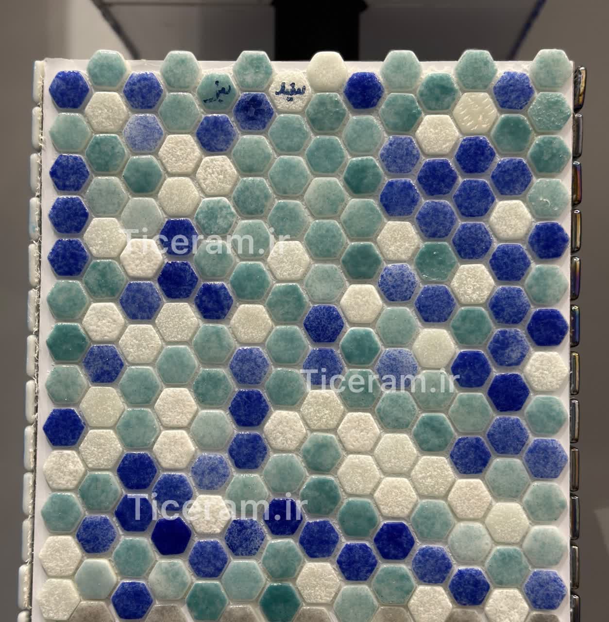 سرامیک استخری شش ضلعی میکس سفید آبی شیشه ای سرا درجه یک